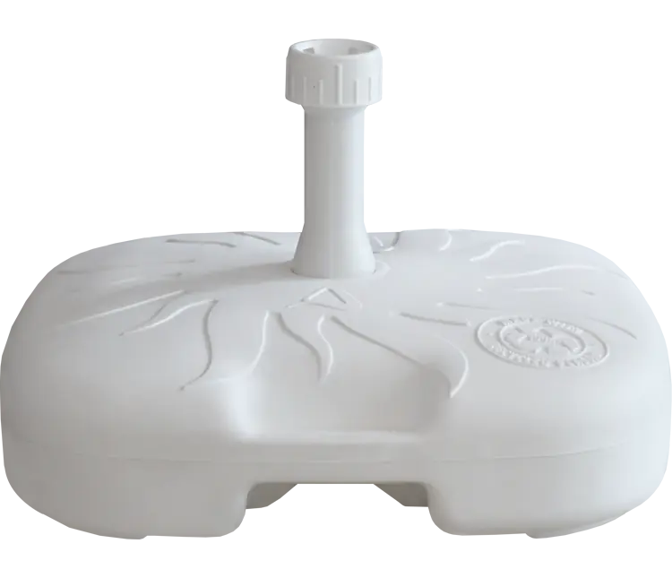 Base de plástico para guarda-sol com haste de 19/33mms, pesa 18kg cheia de água. Para guarda-sóis com a medida: 1,60m, 1,80m e 2m.