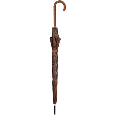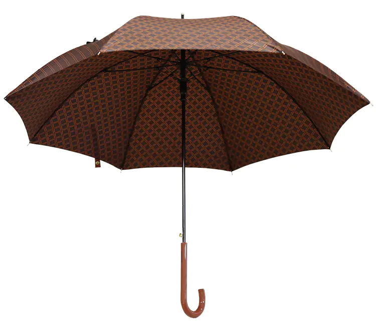 Guarda-chuva automático de mulher, cabo curvo terracota, 61cms de comprimento, 8 varetas, 14mms haste, cobertura com padrão losango terracota.