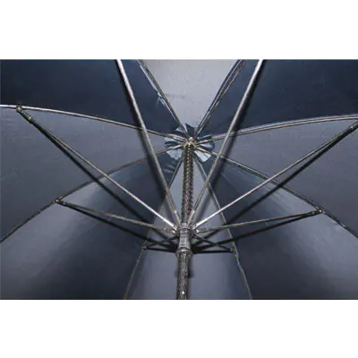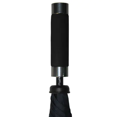 Guarda-chuva golf anti-vento, punho reto com espuma vinílica acetinada (EVA), 73cms de comprimento, 8 varetas, haste em fibra de vidro com 14mm de diâmetro, cobertura em tecido de polyester pongé com 129cms de diâmetro, cor azul escura. Produto internacional da Jossois.