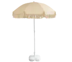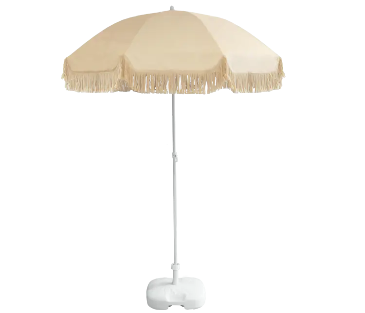 Guarda-sol metálico de 3,5 mm, resistente e duradouro. A cobertura em poliéster bege oferece excelente proteção solar, enquanto as franjas decorativas trazem um toque clássico e elegante. Ideal para jardins, varandas, esplanadas e áreas de lazer.